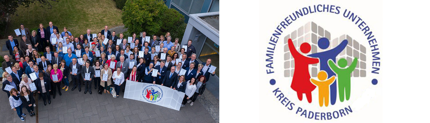 Wir sind stolz darauf, dass wir im Jahr 2025 vom Kompetenzzentrum Frau und Beruf OWL, der Industrie- und Handelskammer Ostwestfalen zu Bielefeld, der Handwerkskammer Ostwestfalen-Lippe zu Bielefeld und dem Kreis Paderborn erneut die Auszeichnung als familienfreundliches Unternehmen erhalten haben und werden unser Engagement für die familiären Belange unserer Mitarbeiterinnen und Mitarbeiter in den nächsten Jahren fortführen.